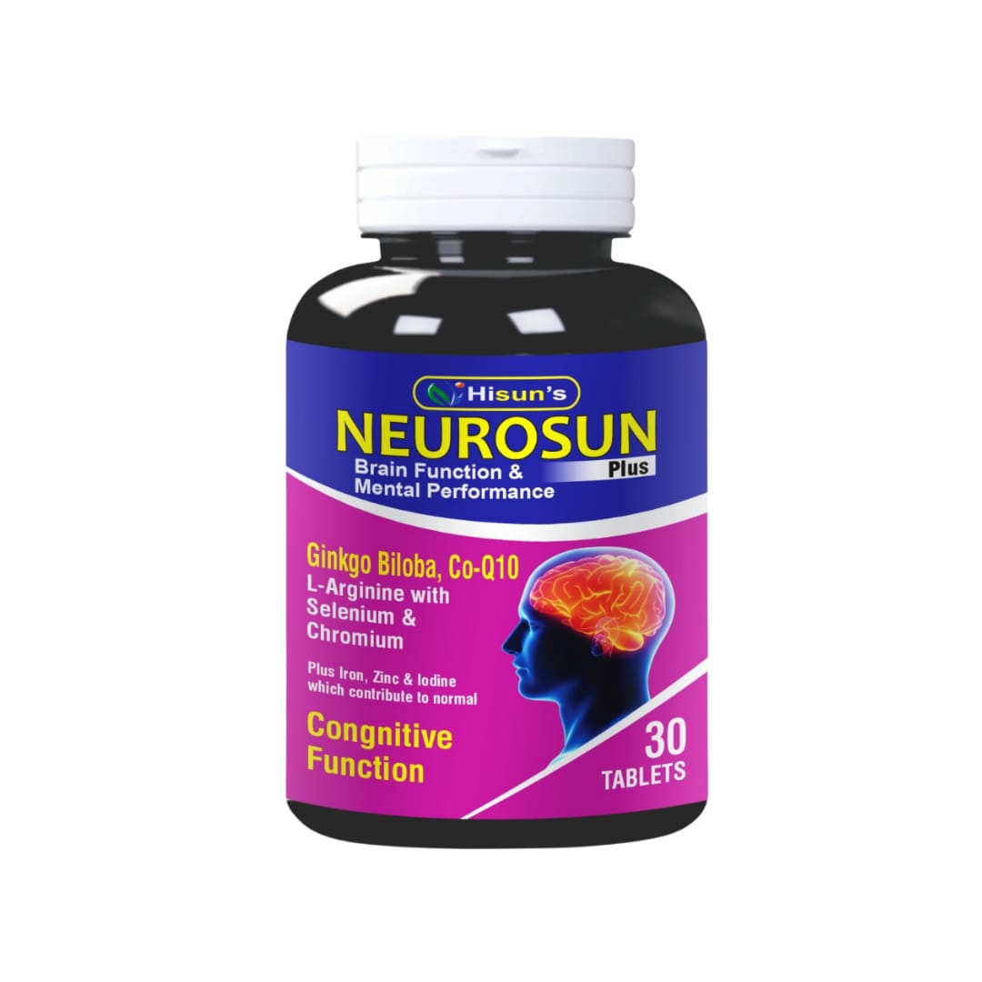 Neurosun by Hisun’s is a complete brain health supplement specially formulated to enhance memory, focus, and mental clarity. These memory support tablets combine clinically proven herbal extracts, amino acids, vitamins, and minerals to support healthy brain circulation, cognitive performance, and overall nervous system function.